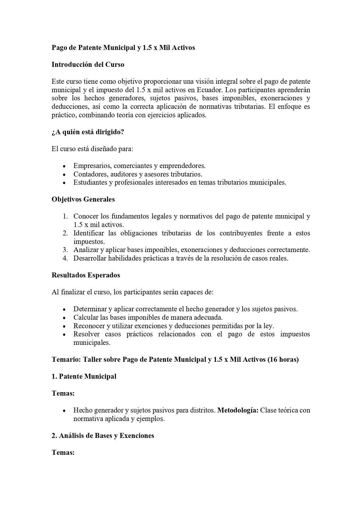 Este curso se centra en proporcionar a los participantes una comprensión profunda y práctica sobre el Impuesto al Valor Agregado (IVA) en Ecuador. A través de explicaciones teóricas y ejercicios prácticos, se explorarán aspectos clave, como el crédito tributario, la aplicación de tarifas, y el tratamiento del IVA en ventas, importaciones y servicios digitales. El curso está diseñado para fortalecer el conocimiento de los asistentes y garantizar el cumplimiento adecuado de las normativas tributarias vigentes.